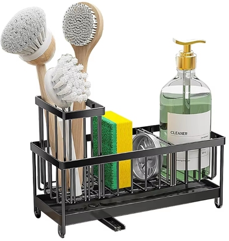 Organisateur de rangement de cuisine en acier inoxydable sur l'évier support de séchage de vaisselle