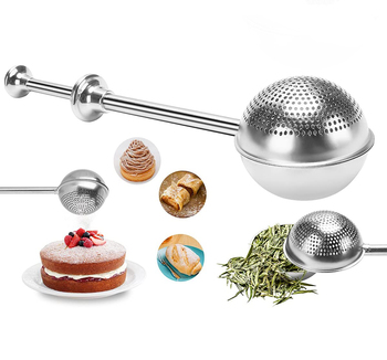 Aço inoxidável peneira farinha espanador chá coador com mola operado alça para cozimento