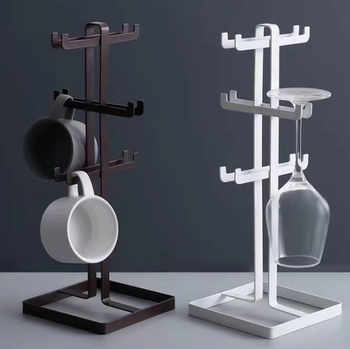 Metal vinho vidro e copo caneca titular com base para armazenamento e exibição
