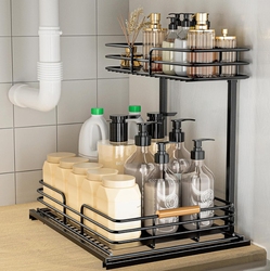 Prateleira organizadora de metal para cozinha e banheiro, organizador de 2 camadas removível para armazenamento sob pia