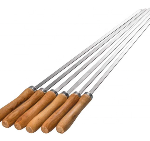 Conjunto de espetos de churrasco de aço inoxidável, espetos de churrasco plana, vara de churrasco reutilizável/espetos