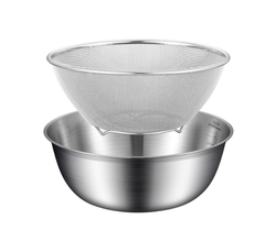 Tigela de mistura de alimentos de malha fina de aço inoxidável para lavar arroz frutas legumes com eficiência
