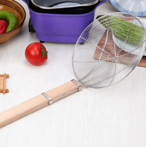 Filtro de fritura de óleo grande em aço inoxidável, hotel, casa, colher, bacia de óleo