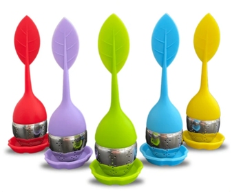 Aço inoxidável Silicone Handle Tea Infuser Set Bola Forma Chá Coador com Bandeja de Gotejamento Chá Solto Steeper Metal Filtro Utensílio